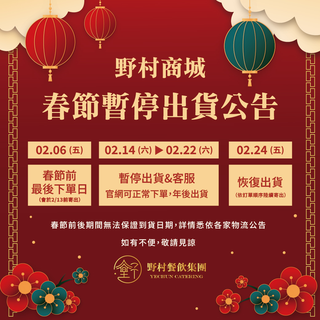 野村燒肉 野饗鍋 野村商城 最新消息 最新活動消息 【野村燒肉】12月壽星爽烤整個月 2025-12-16 了解更多 【野村燒肉】跨年夜不打烊 2025-12-16 了解更多 【野村燒肉】尾牙春酒優惠方案 2025-12-16 了解更多 【野饗鍋】全新湯底上市 2025-10-17 了解更多 1 2 下一頁 » 官網限定鮮食宅配 Online Shop 加入購物車 快速瀏覽 關閉 厚切牛舌(150g±10%) 原肉系列商品 NT$400 加入購物車 快速瀏覽 關閉 日式碳烤奶香麻糬(600g) 甜點系列商品 NT$150 加入購物車 快速瀏覽 關閉 日本A5和牛側腹燒肉片(150g±10%) 原肉系列商品 NT$400 加入購物車 快速瀏覽 關閉 美國安格斯肩胛牛小排(150g±10%) 原肉系列商品 NT$295 加入購物車 快速瀏覽 關閉 西班牙伊比利豬肉片(150g±10%) 原肉系列商品 NT$300 加入購物車 快速瀏覽 關閉 澳洲和牛霜降燒烤片(150g±10%) 原肉系列商品 NT$250