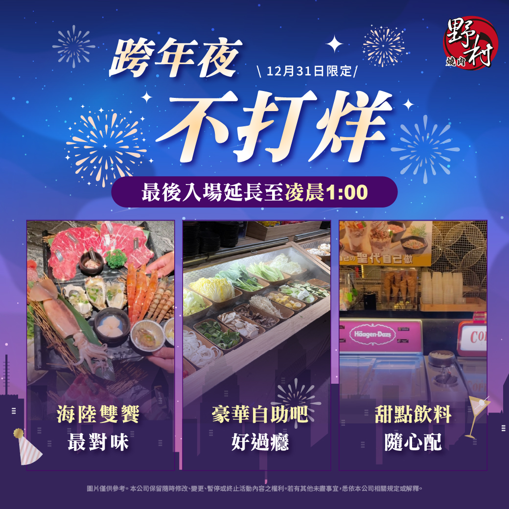 16 12 月 最新消息 【野村燒肉】跨年夜不打烊 2025-12-16 By 管理員 跨年夜不打烊,陪你迎接2026🎉 野村燒肉火烤雙饗,跨年場限時開放🕑 一年結尾,野村陪你 #火鍋 #燒肉吃到飽🔥 不只延長收客至凌晨 01...閱讀更多
